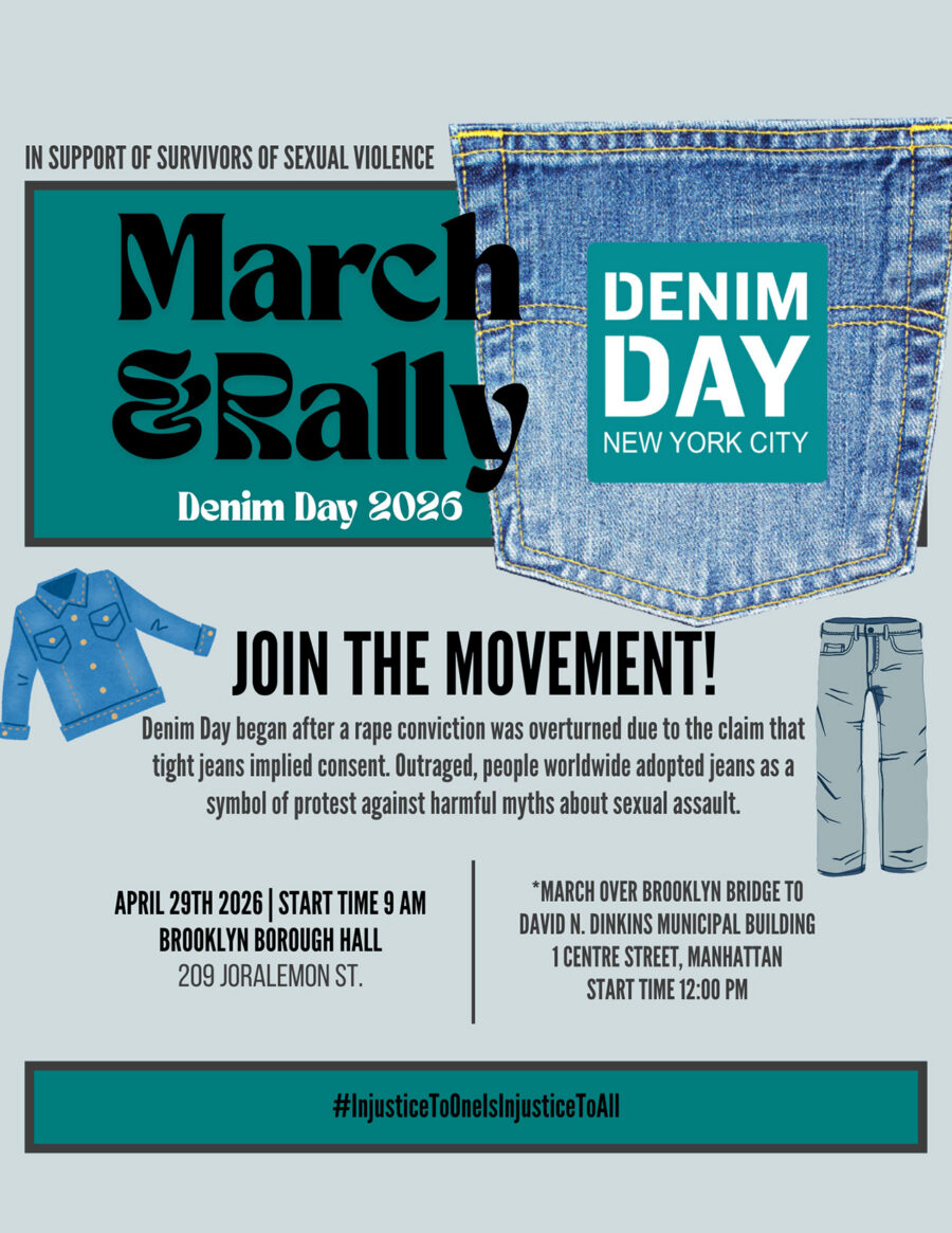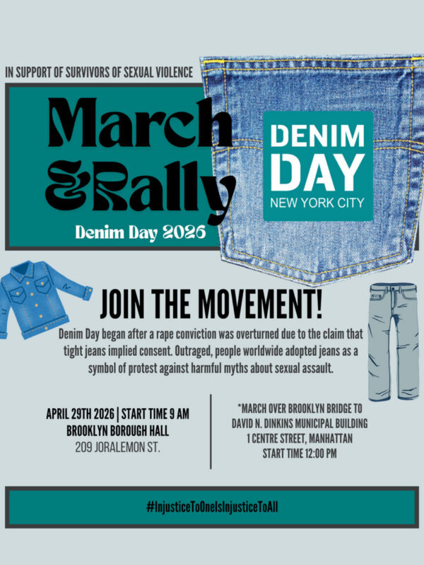 9:00 a.m.: Gather at Brooklyn Borough Hall for kick-off event (209 Joralemon, Brooklyn, NY 11201) 11:30 a.m.: March from Brooklyn Borough Hall over the Brooklyn Bridge to 1 Centre St.-David […] |