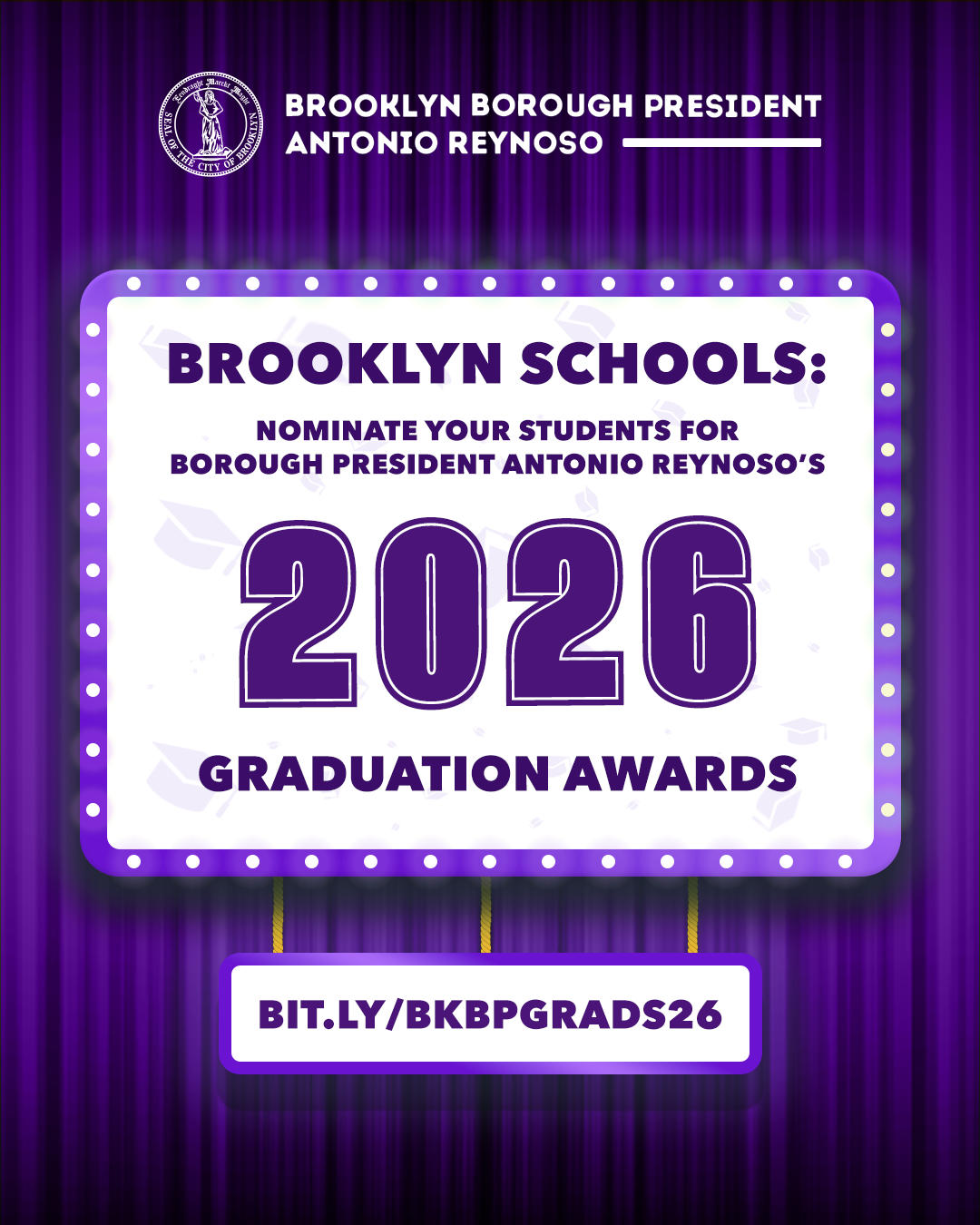 Nominate Brooklyn Students for Brooklyn Borough President Reynoso’s 2026 Graduation Awards Nominations Close: Monday, June 1 at 5:00pm Borough President Reynoso is proud to announce that nominations are now open for his 2026 Pre-K-12 Graduation Awards! This year’s awards will follow the previous year’s categories, ensuring we’re awarding students for both academic achievement and other […]