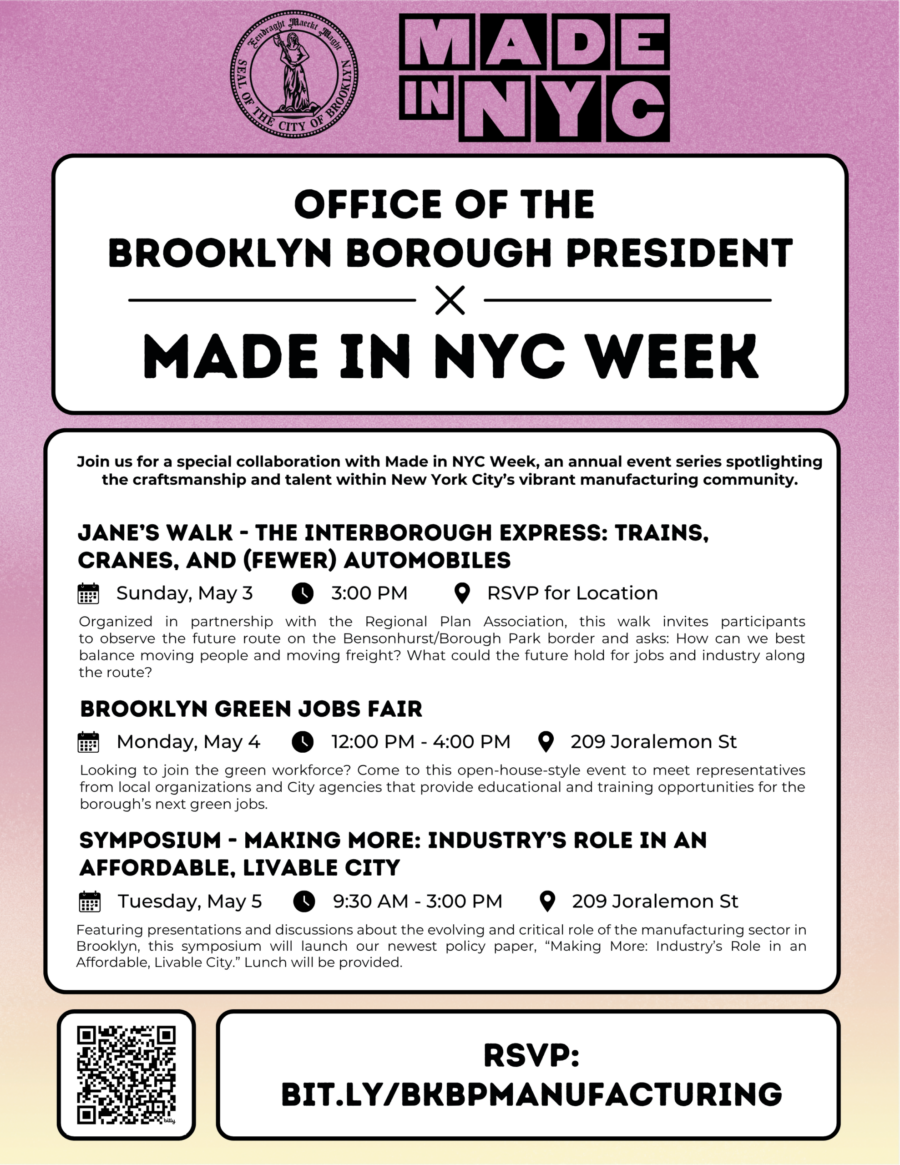 As part of Made in NYC Week 2026, the Office of Brooklyn Borough President Antonio Reynoso presents a symposium to launch our newest policy paper, “Making More: Industry’s Role in an […]