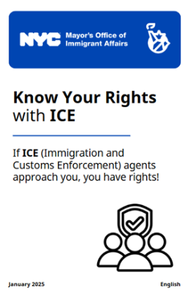 Every New Yorker, regardless of citizenship status, has rights and protections under the law. Learn more about your rights when confronted by immigration enforcement by reviewing New York City Mayor’s Office of Immigrant Affairs know-your-rights guides.