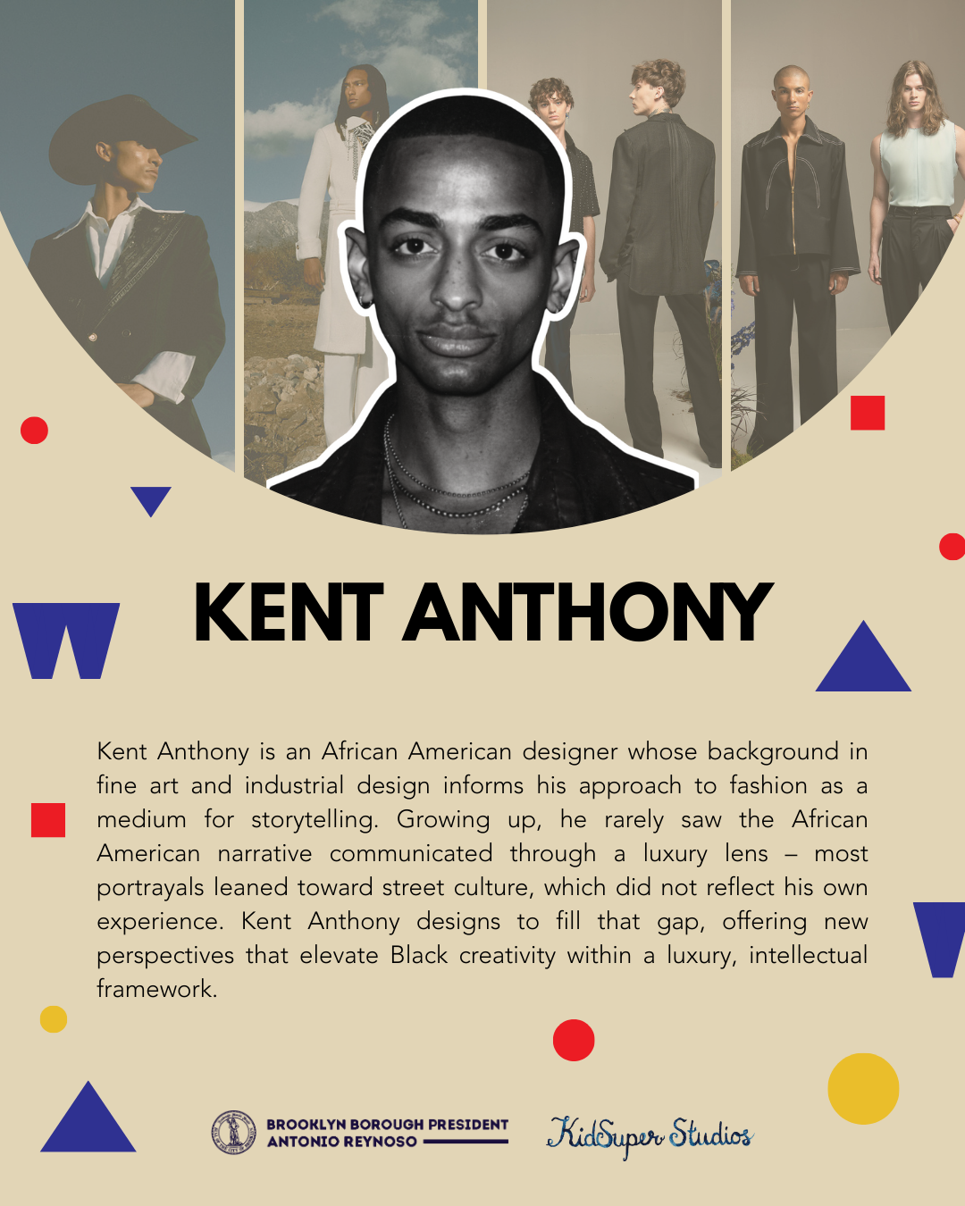 Kent Anthony is an African American designer whose background in fine art and industrial design informs his approach to fashion as a medium for storytelling. Growing up, he rarely saw the African American narrative communicated through a luxury lens – most portrayals leaned toward street culture, which did not reflect his own experience. Kent Anthony designs to fill that gap, offering new perspectives that elevate Black creativity within a luxury, intellectual framework.