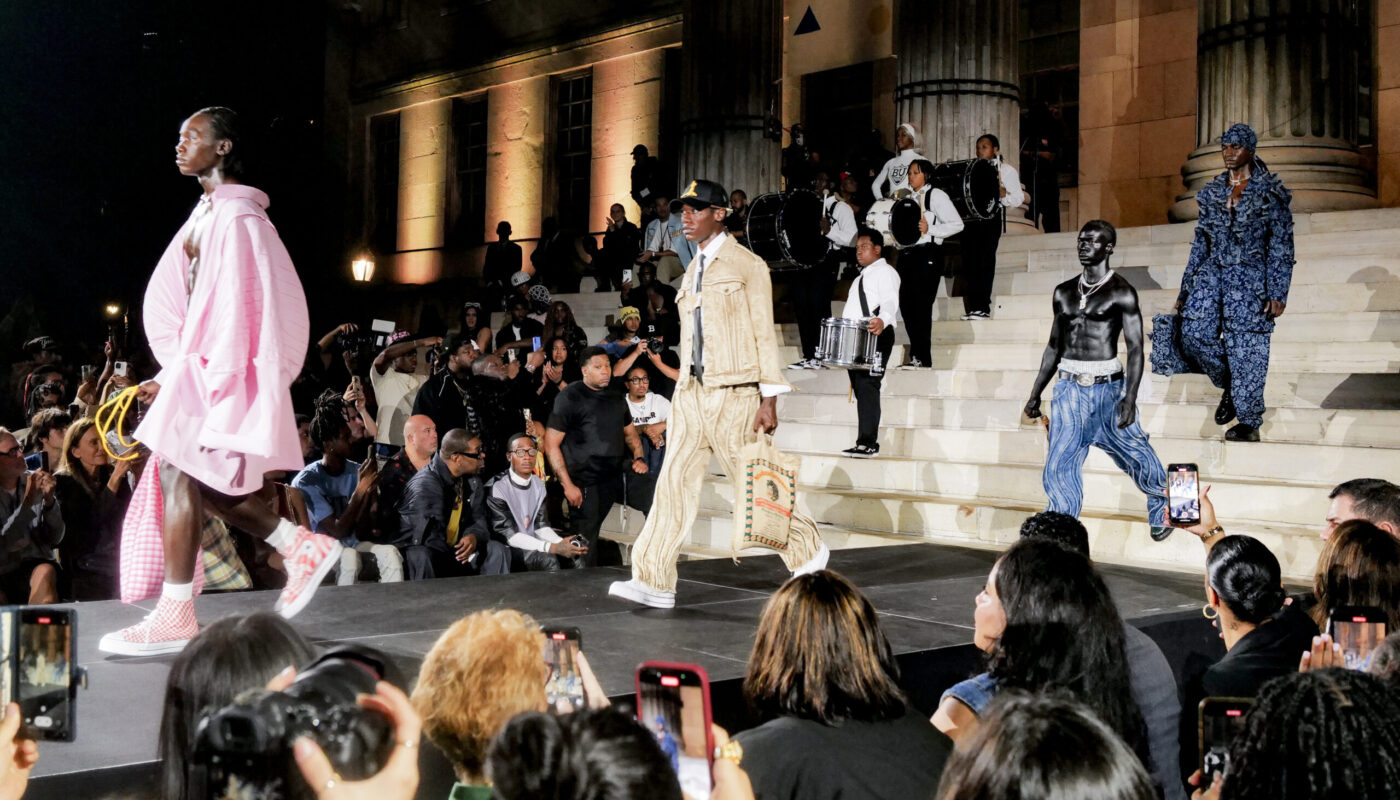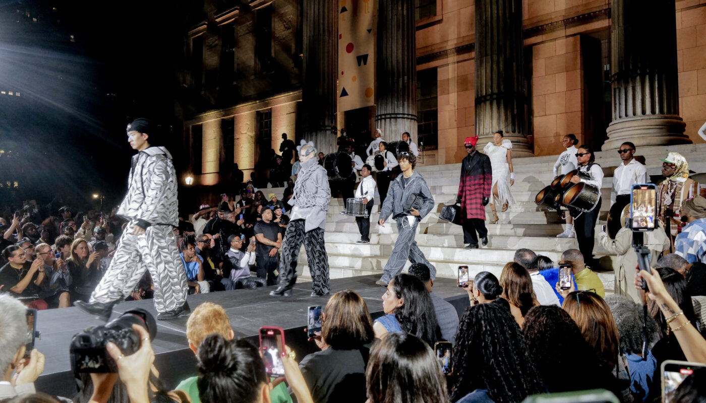 On September 14th, the notoriously exclusive New York Fashion Week unfolded in the open air of Brooklyn Borough Hall Plaza, where more than a thousand people gathered for The People’s Runway. Presented by Brooklyn Borough President Antonio Reynoso and Brooklyn Arts Ambassador Colm Dillane – the creative polymath behind KidSuper – the show brought five of the borough’s most promising designers onto one of fashion’s most visible stages.